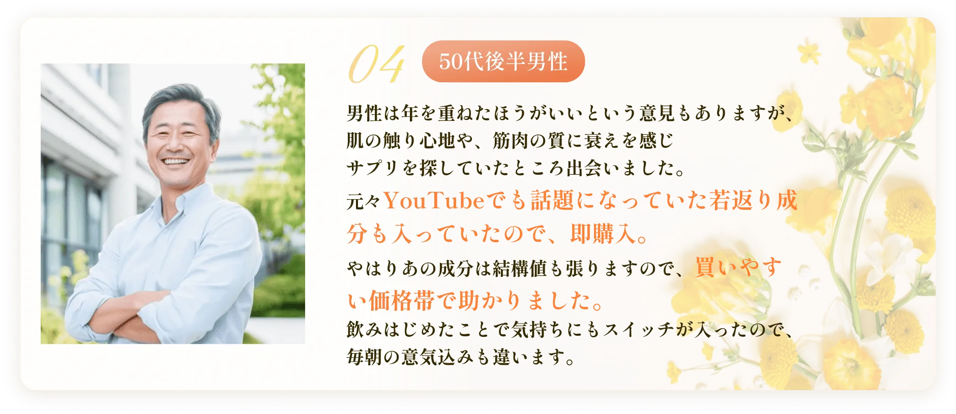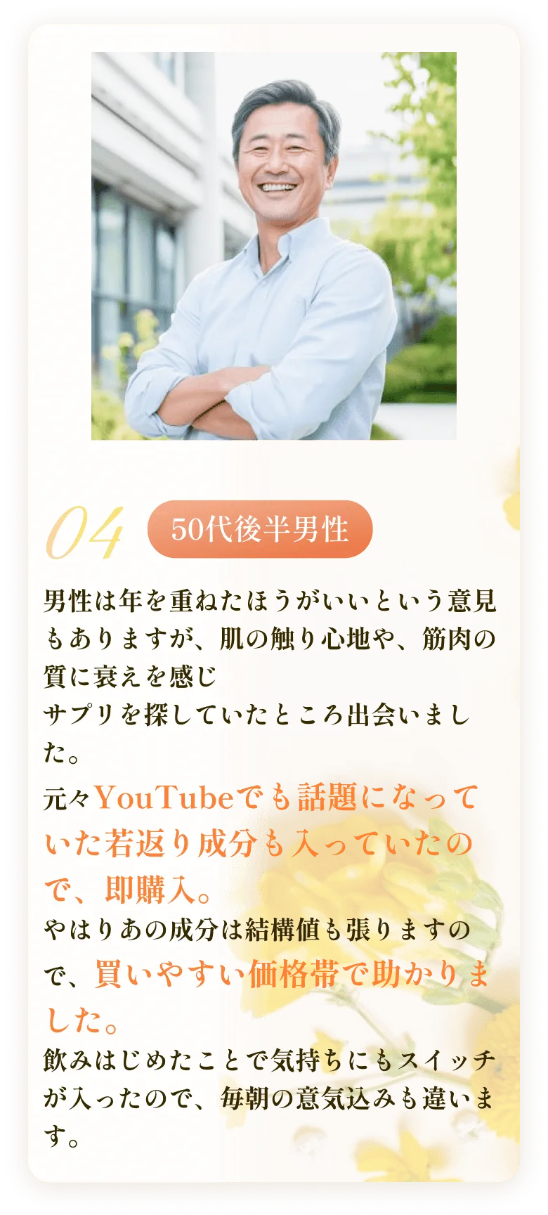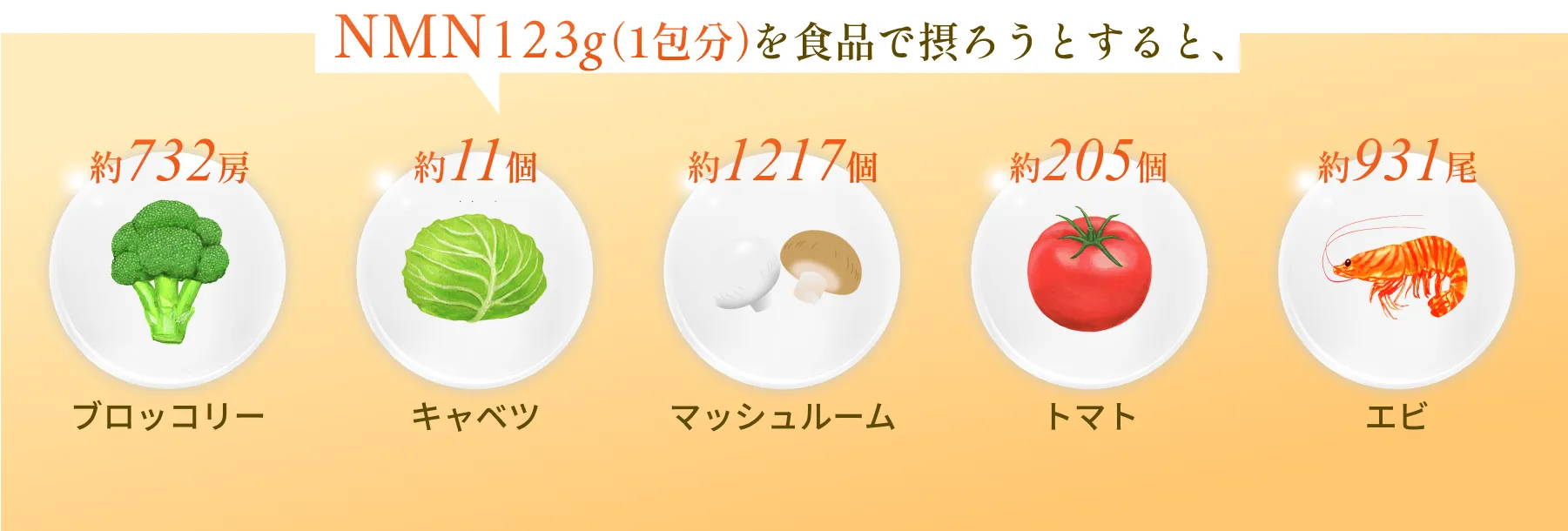 正式名称は「ニコチンアミド・モノ・ヌクレオチド」といい、 ヒトを含めあらゆる生物の体内で自然に生成されている物質のひとつです。 「NMN」は、体内に吸収されたのち「NAD」に変化します。「NAD」は人々の健康や、若々しさを維持する上で非常に重要な役割を果たしますが、残念ながら加齢と共に減少し、それに伴い生物は徐々に衰えていきます。